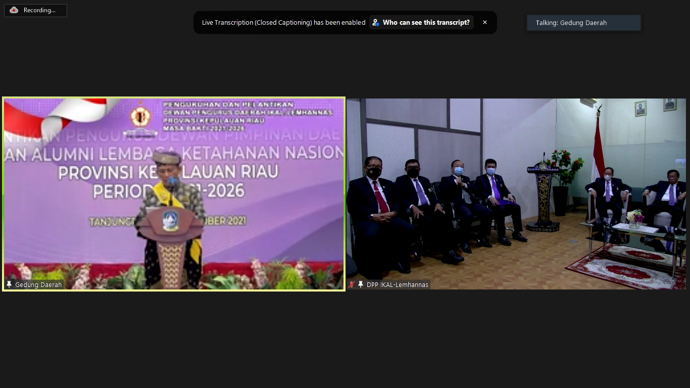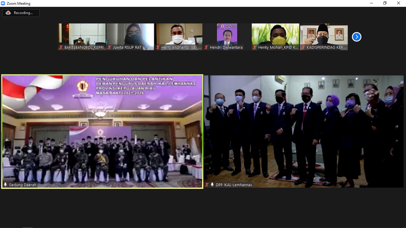 <p>Pengukuhan dan Pelantikan Pengurus DPD IKAL Lemhannas Propinsi Kepulauan Riau, berlangsung sukses siang tadi ( 28/10 ) secara hybrid. Ketum DPP IKAL-Lemhannas, Jenderal TNI ( Purn ) Agum Gumelar, seusai melantik pengurus mengingatkan, tugas utama IKAL Lemhannas menyikapi kondisi bangsa saat ini adalah terus merajut persatuan dan kesatuan bangsa.<br>IKAL juga harus mengawal jalannya pemerintahan, tidak perlu harus didalam, diluar pun itu juga mengawal bahkan menjadi oposisi berarti juga mengawal. Sebelumnya Gubernur Kepulauan Riau Ansar Ahmad mengatakan, akan mendukung program-program pengurus IKAL-Lemhannas Kepri dalam rangka memberi masukan pada pemerintah daerah mengatasi dan menyukseskan kewajiban Pemda dalam meningkatkan kesejahteraan rakyat.<br>Dewan Pengurus Daerah IKAL-Lemhannas Kepulauan Riau masa bakti tahun 2021-2026, dipimpin Ketua Syamsul Bahrum PhD, Wakil Ketua I Laksma TNI Bambang Wahyudi, Waka II Virgiani Rahayu Saraswati SH, waka III Mirza Bahtiar SE.AK, Sekretaris Dr. Razaki Parsada dan Bendahara Henny Susanty.<br>Hadir mendampingi Ketum, Waketum I Dr. Ir. Mustafa Abubakar MSi, Sekjen Marsdya TNI ( Purn ) Daryatmo, Kakorbid I Dr. dr. Ulla Nuchrawaty, Kakorbid II Mayjen TNI ( Purn ) Djasri Marin dan pengurus pusat lainnya.<br>#Humas</p>
