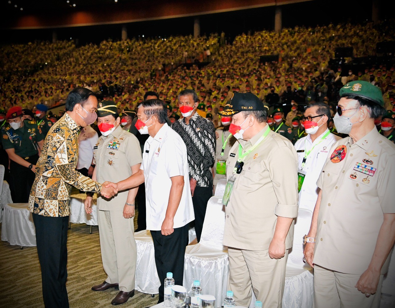 <p>Presiden Republik Indonesia Joko widodo menyalami Jenderal TNI ( Purn ) Agum Gumelar di SICC (Sentul Internasional Convention Center) ( 5/8 ) pada acara Silaturahmi Nasional Presiden dengan Purnawirawan TNI<br> </p>