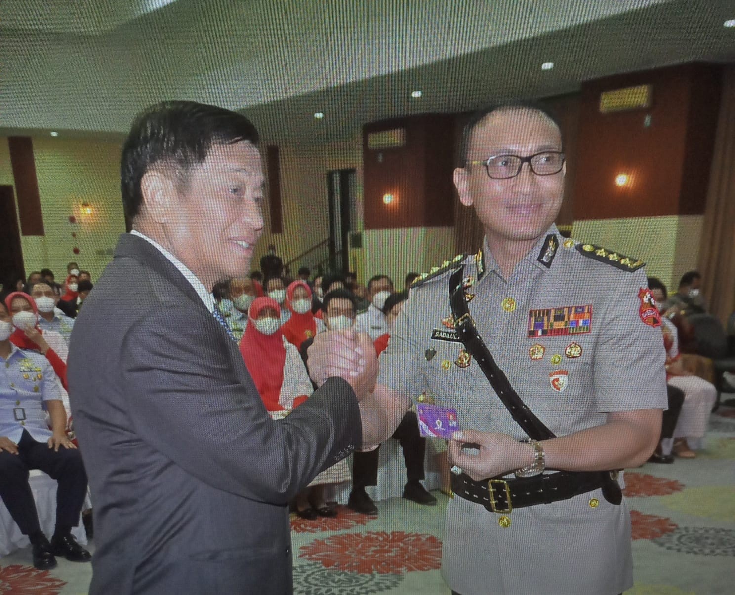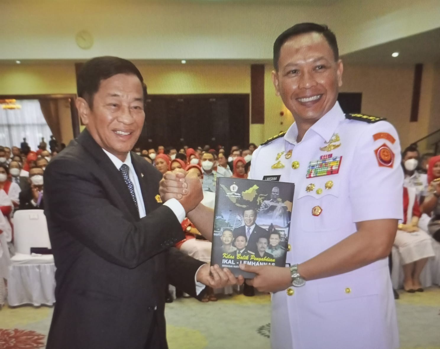 <p>Ketum DPP IKAL-Lemhannas Jenderal TNI (Purn) Agum Gumelar menyerahkan KTA IKAL kepada Kombespol Sabilul - Ketua PPRA Angkatan 63 pada penutupan pendidikan di Dwi Warna Purwa Lemhannas ( 16/8 ) - humas DPP IKAL-Lemhannas.</p>
