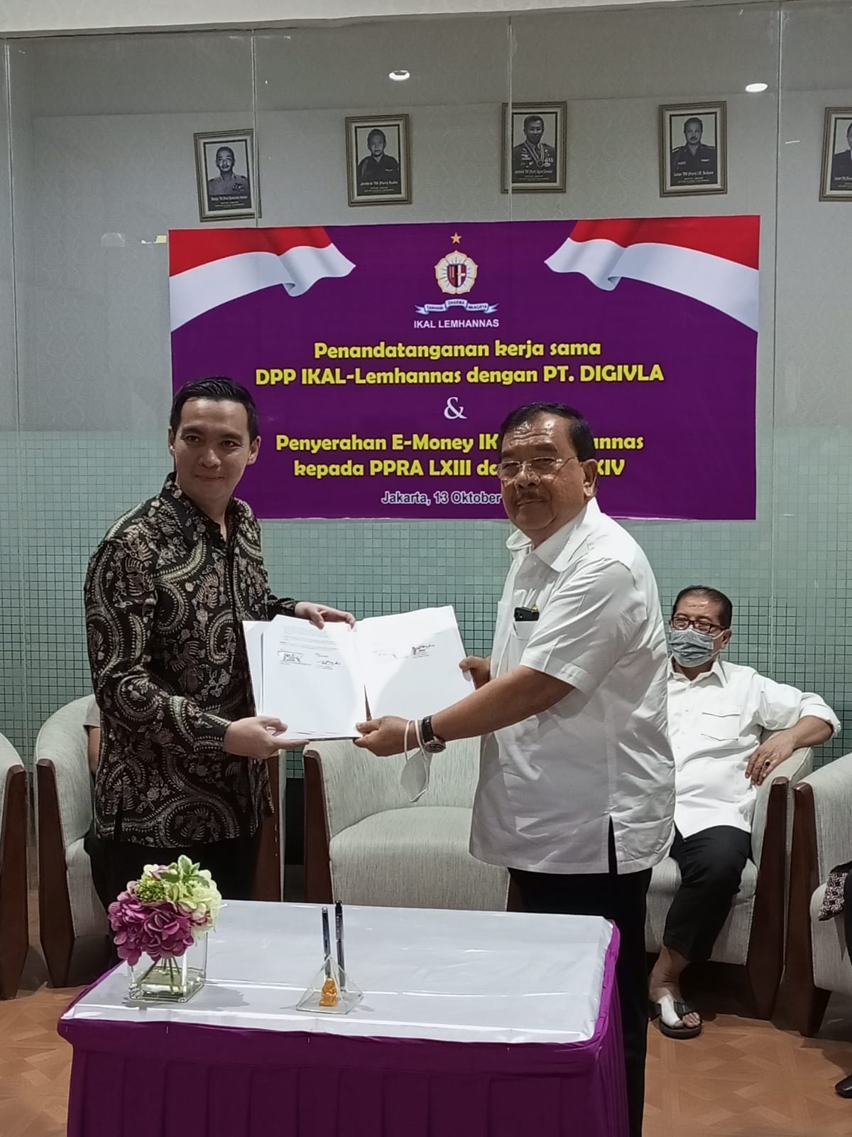 <p>Gubernur Lemhannas menyatakan era teknologi harus dimaknai secara tepat dan Lemhannas terus melakukan transformasi teknologi. Diwakili Brigjenpol Agus Sardono - Kabiro umum, dikatakan transformasi harus dilakukan bersinergi dengan banyak pihak. Sementara itu Waketum II DPP IKAL Lemhannas Komjenpol ( P ) Togar Sianipar mengatakan kegiatan alumni IKAL, tidak terbatas hanya dalam konteks akademik saja, tetapi juga terkait dengan usaha mendapatkan profit legal untuk kepentingan organisasi melalui PT DHN. Semua terangkum dalam acara penandatanganan kerjasama DPP IKAL Lemhannas dengan PT Digivla dibidang IT dan konsultan teknologi digital di set IKAL Lemhannas ( 13/10 ). Ikut menyampaikan paparan Dirut PT Digivla Reza Maulana dan acara diakhiri dengan diskusi dan foto bersama. Hadir Sekjen IKAL-Lemhannas Marsdya TNI ( Purn ) Daryatmo, Dirut PT. DHN Kartika Antono dan perwakilan PPRA 63 dan PPRA 64 yang menerima e-money.</p>